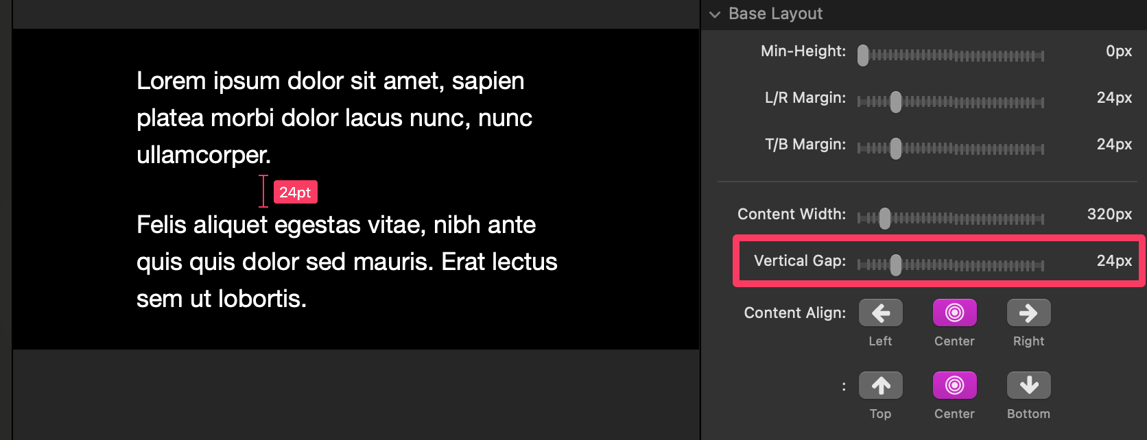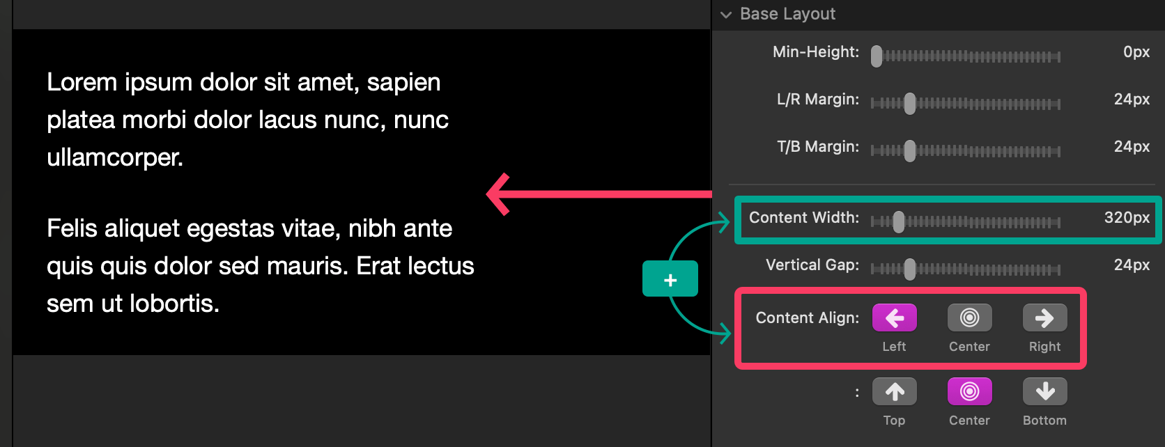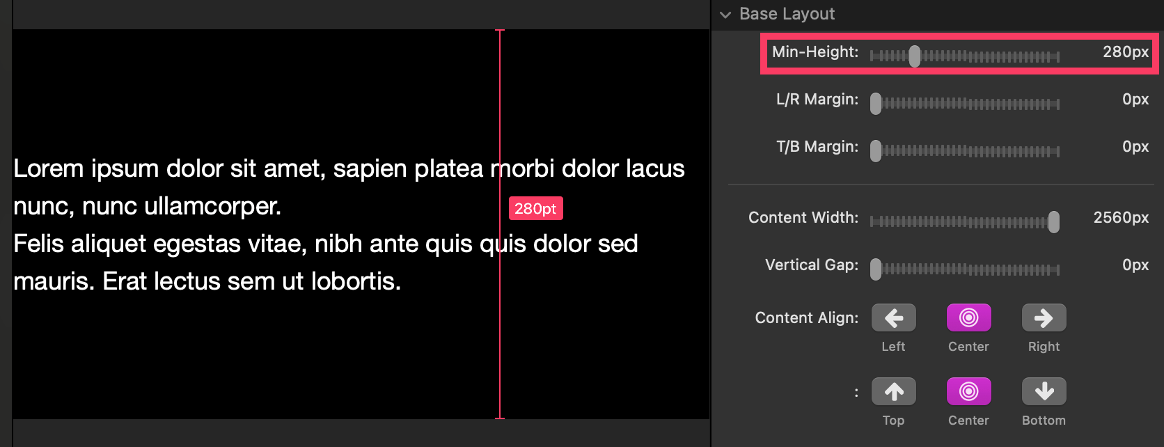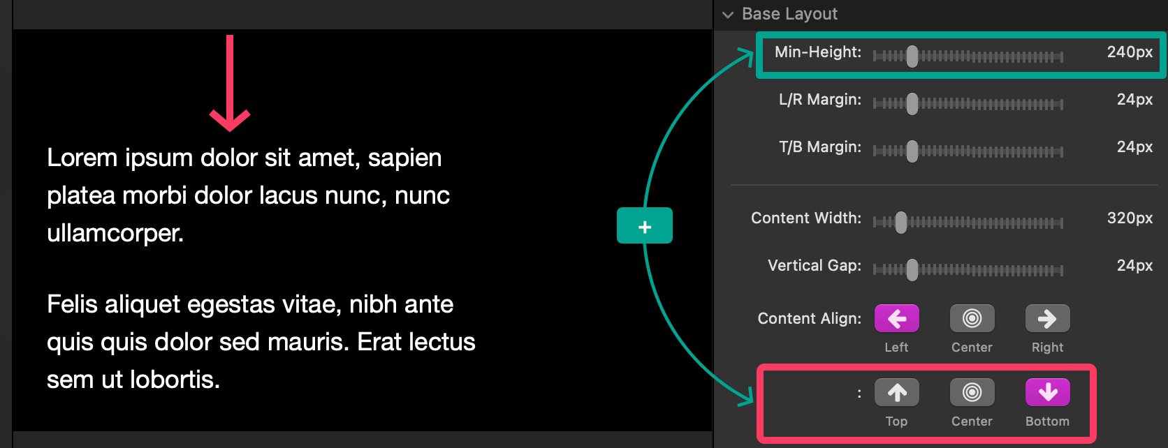 - Tip: If you also align vertically (see Content Align), a larger Min-Height lets you place content at the top / center / bottom.