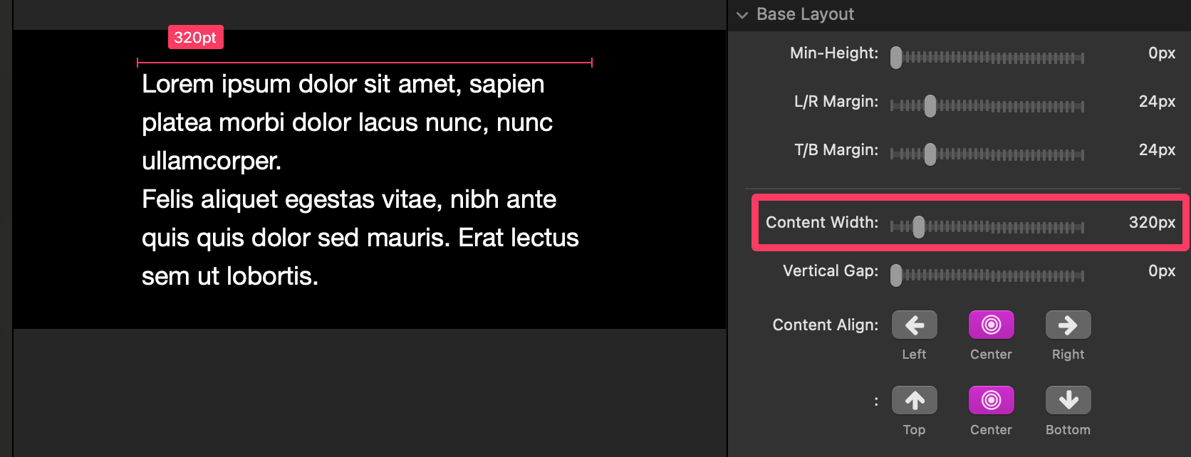 - If Center isn’t doing anything horizontally, check: Is Content Width actually smaller than the container?