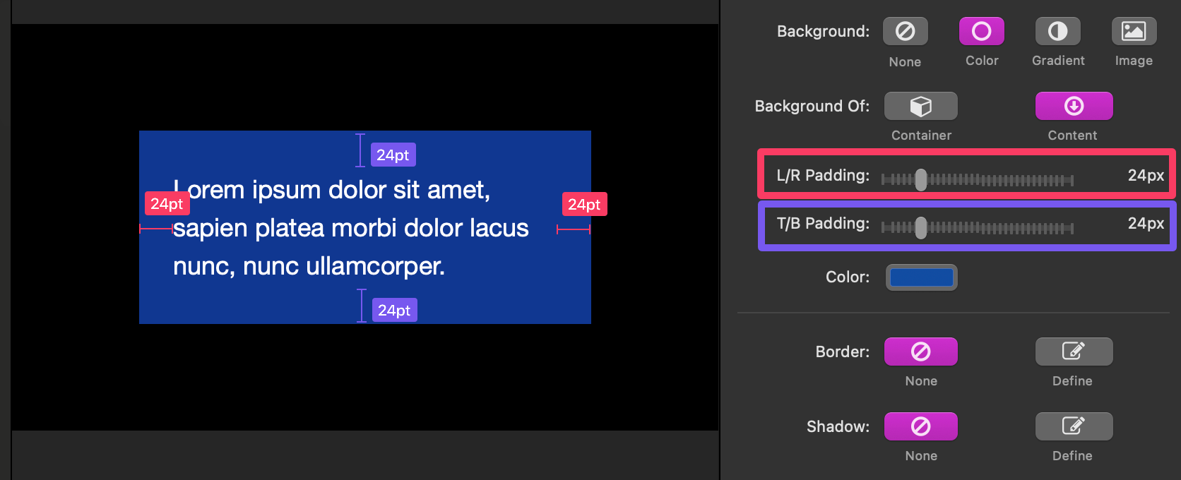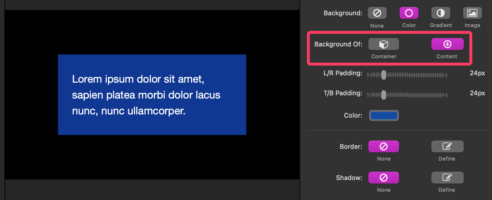 - Content — background wraps just the content (so it moves with the content when aligned).