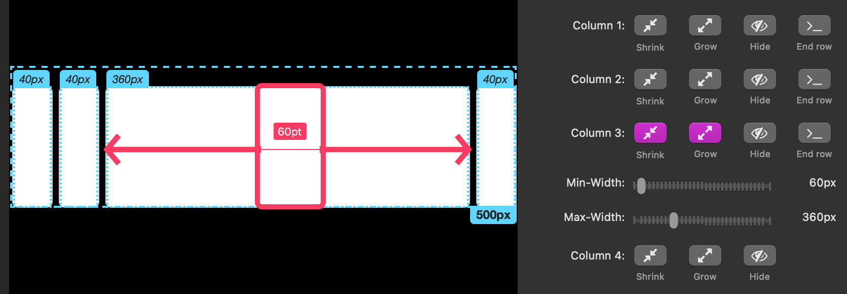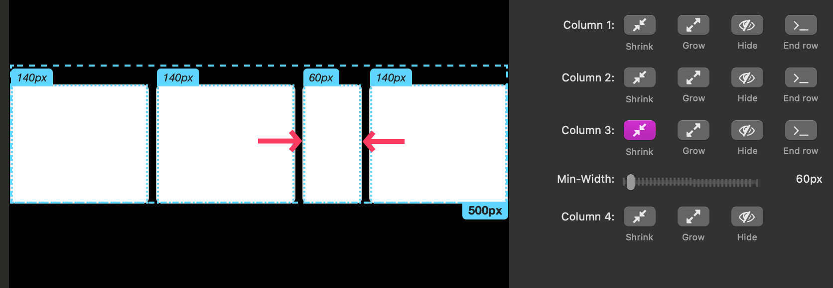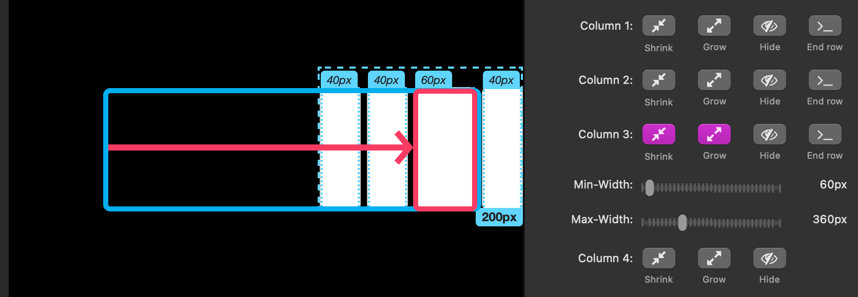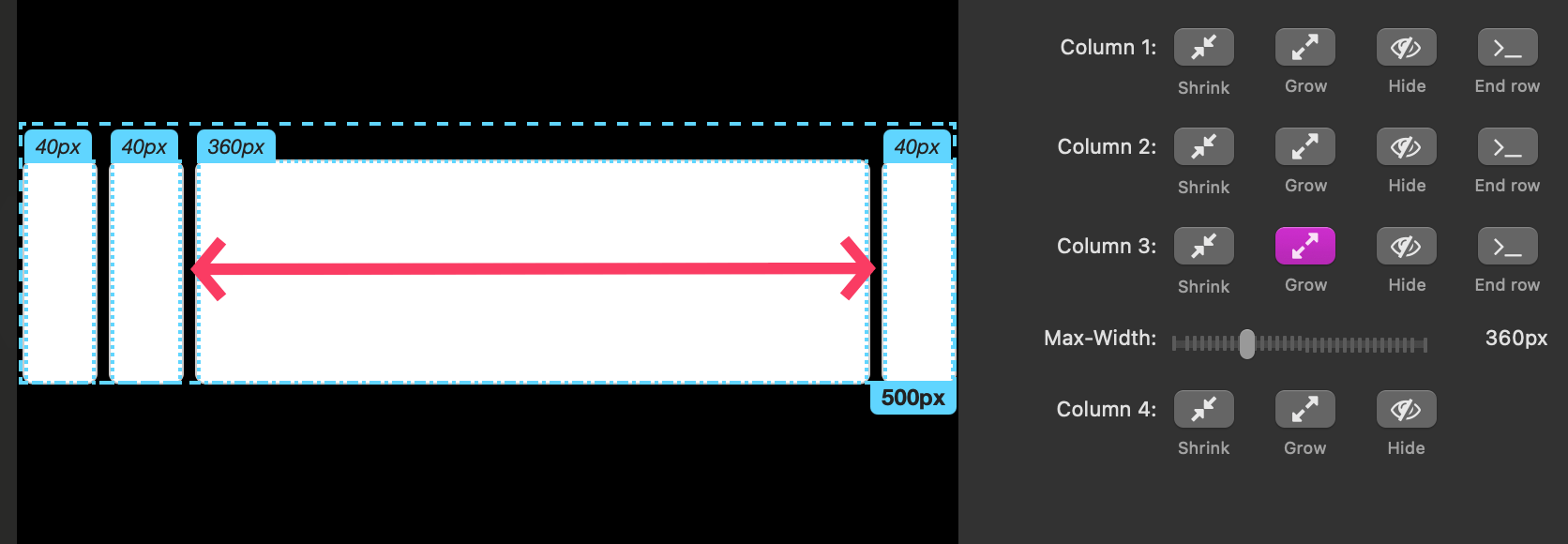 - Col 2: Shrink (Min-Width 280) and Grow (Max-Width 700) ? primary