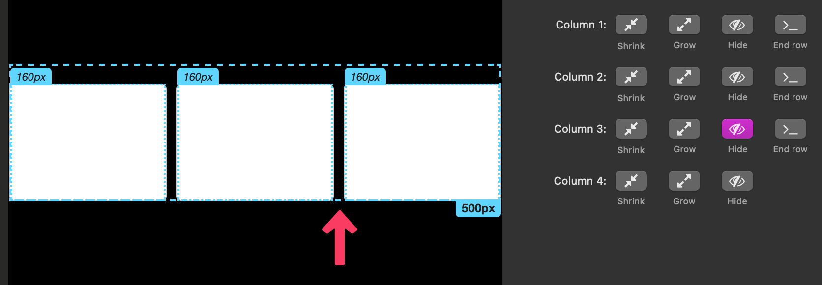 - Removes the visual column but it can still affect layout if Shrink/Grow are on (it still takes space).