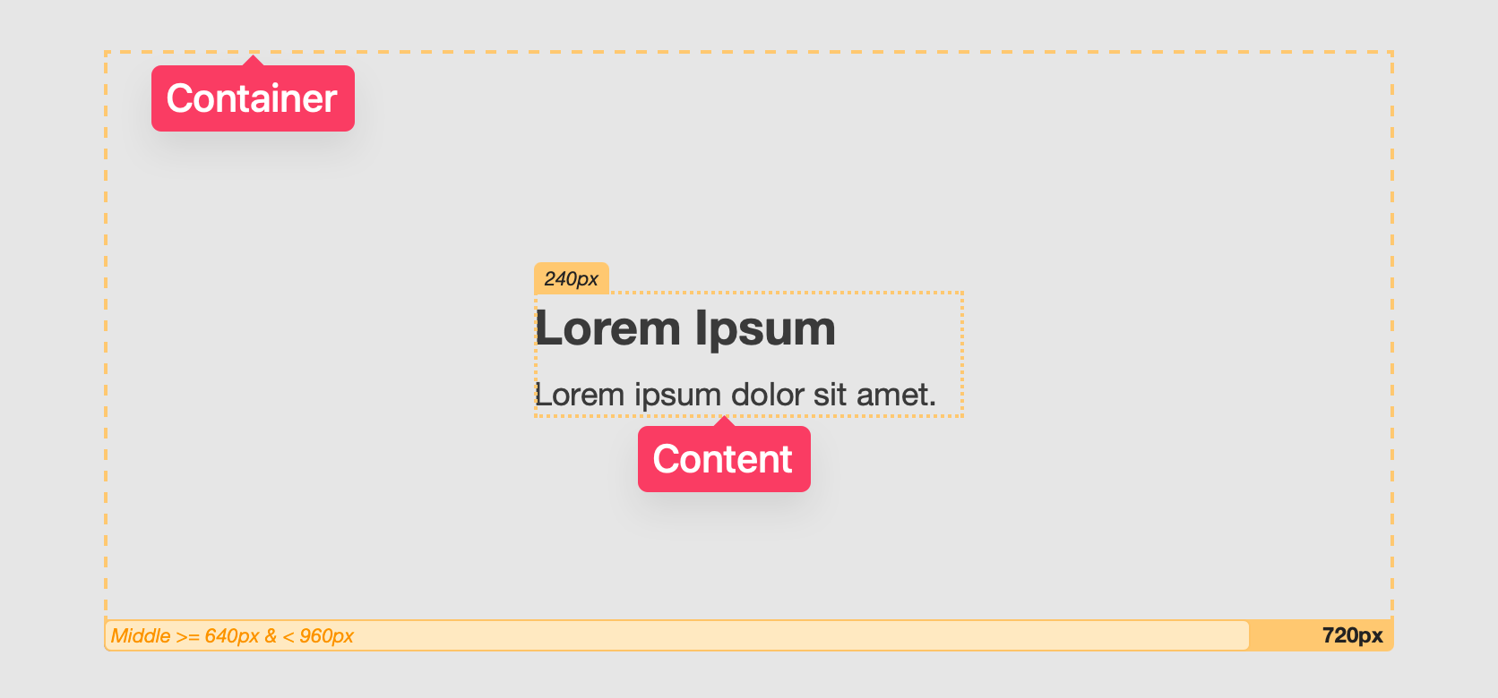 What it shows: key measurements of the container, columns, and content, updating live as you change the window/device width.