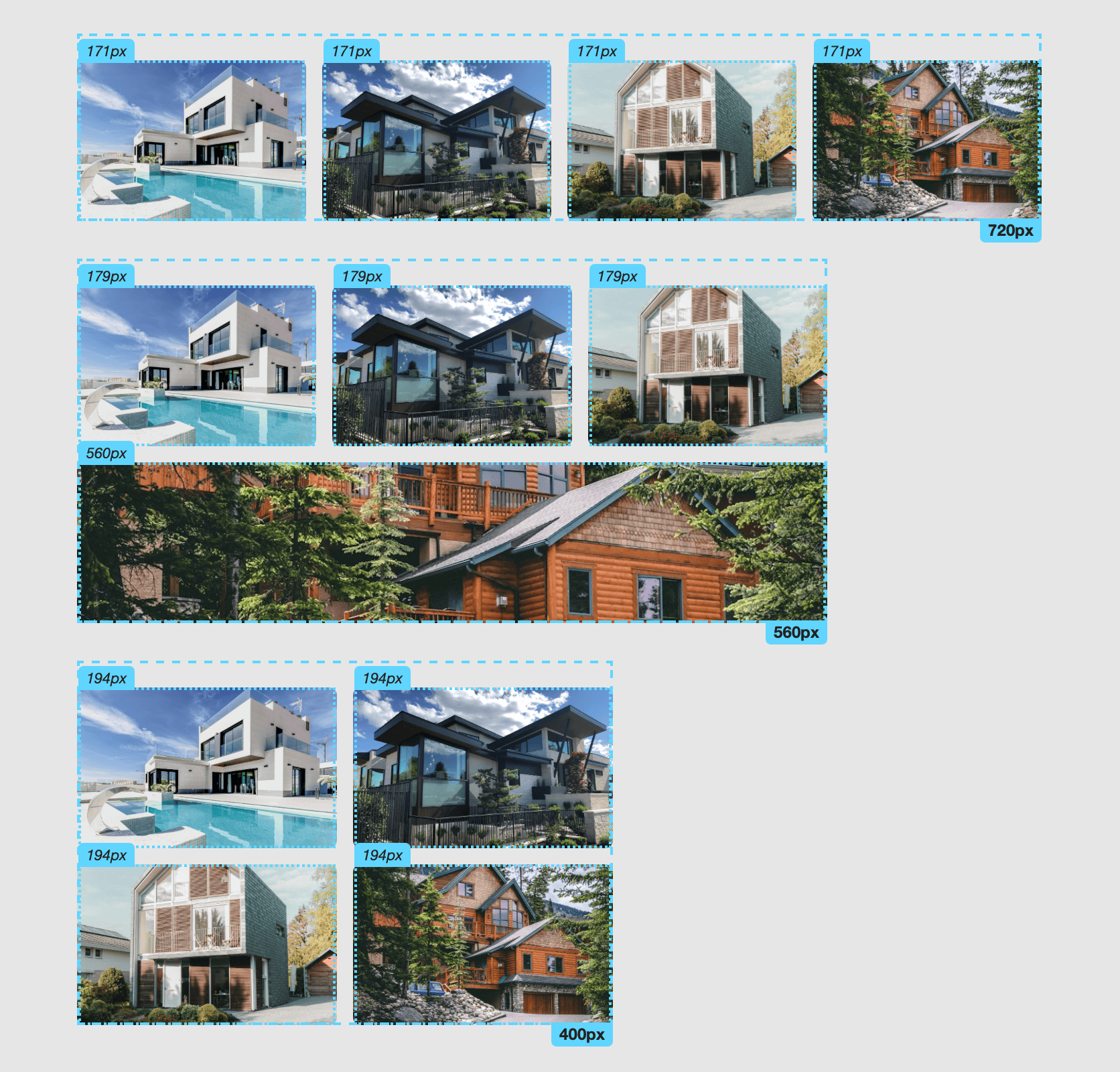- 4 columns, Col Min-Width = 240, Horizontal Gap = 24