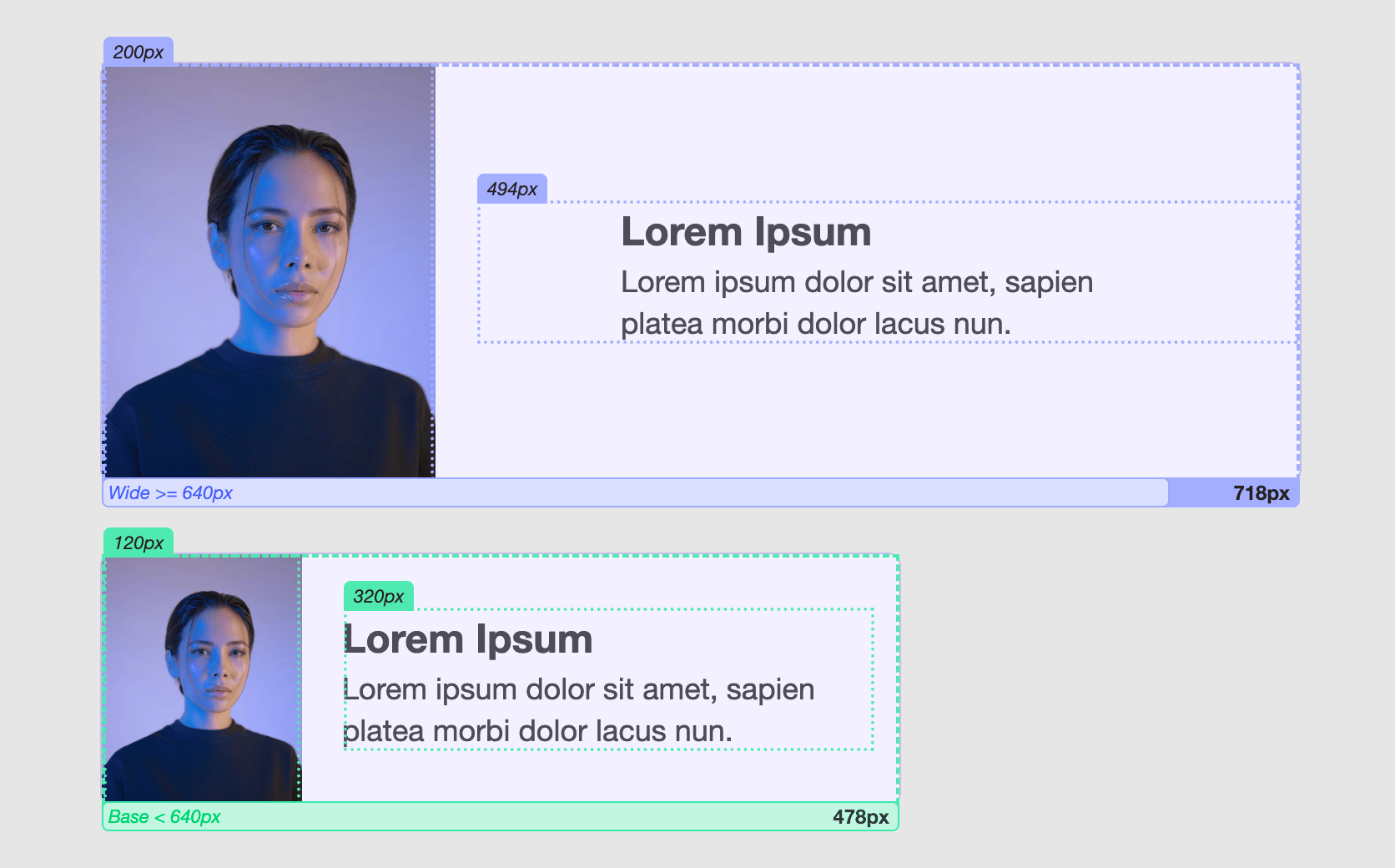 - Available width/space: The width the stack has inside its parent. This is what Breakpoints measure.