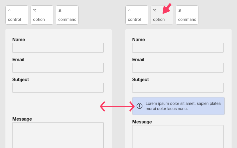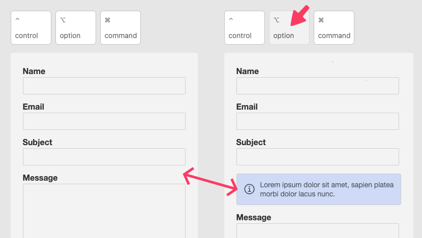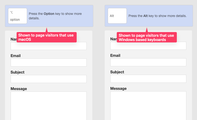 - Note – Displays custom content tailored to the user’s operating system (macOS or Windows). You can also choose whether this content appears for users with a physical keyboard or those using a touchscreen device.