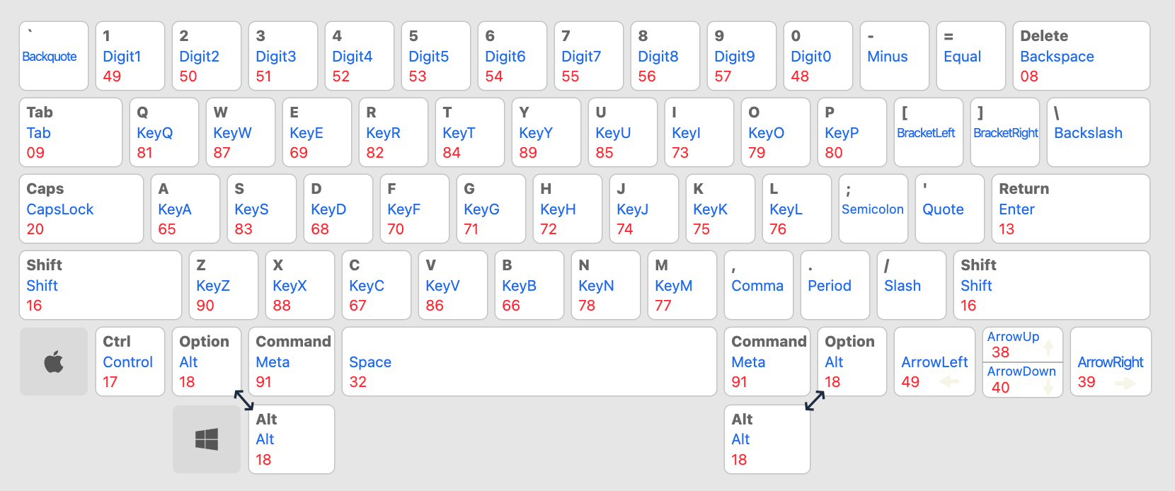 Refer to the chart below for a full list of labels, names, and codes. For non-U.S. keyboards, use the U.S. equivalent.